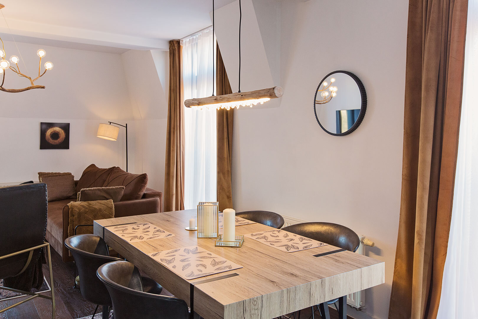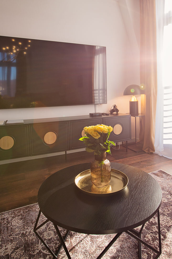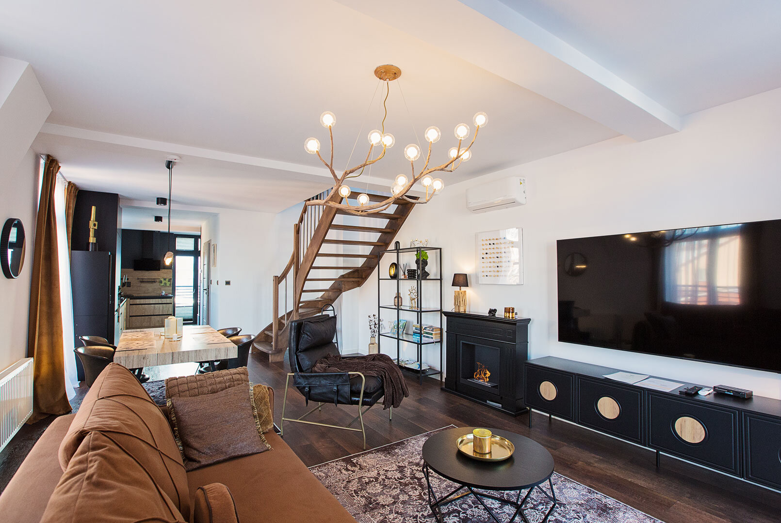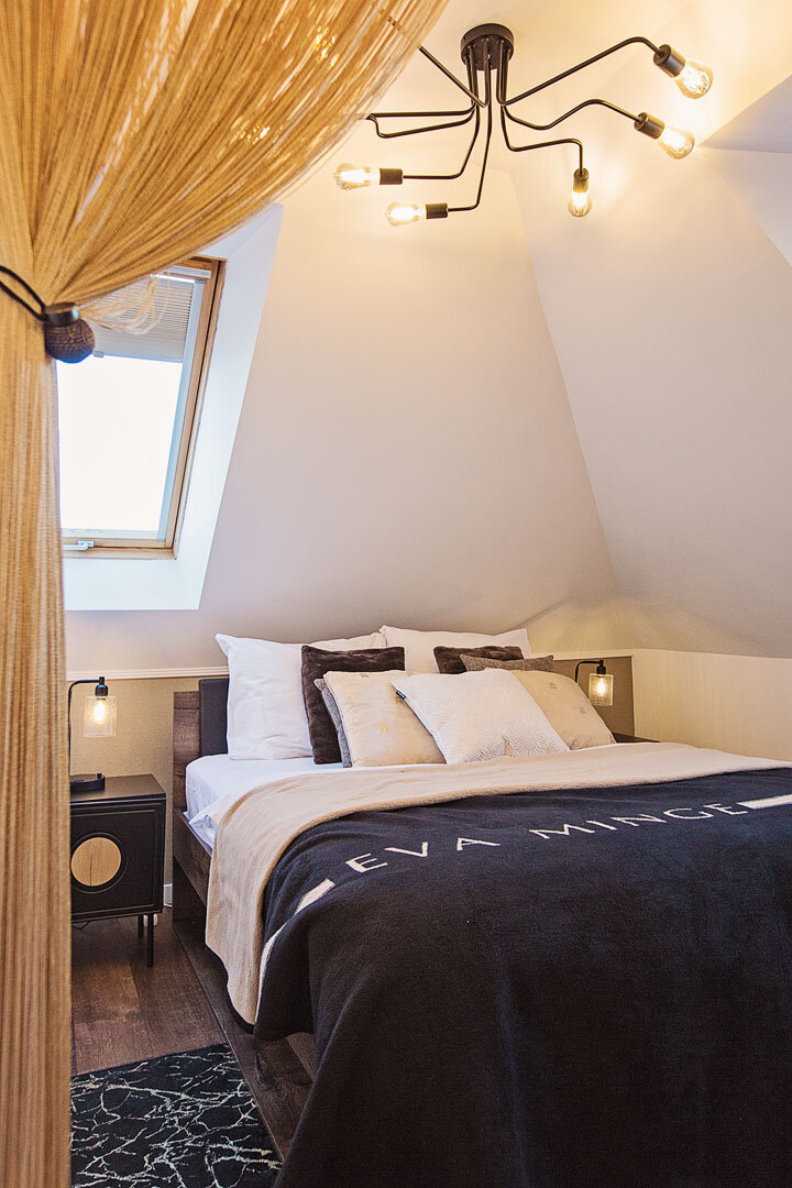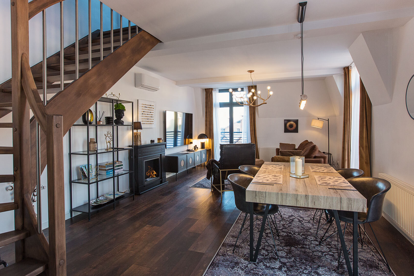 Loft Gryfita to stylowy, dwupoziomowy apartament dla osób, które cenią design, ciszę i wyjątkową atmosferę. Nazwa nawiązuje do dynastii Gryfitów, która przez wieki panowała w tym regionie – dziś historia ta wraca w nowoczesnej, subtelnej formie.